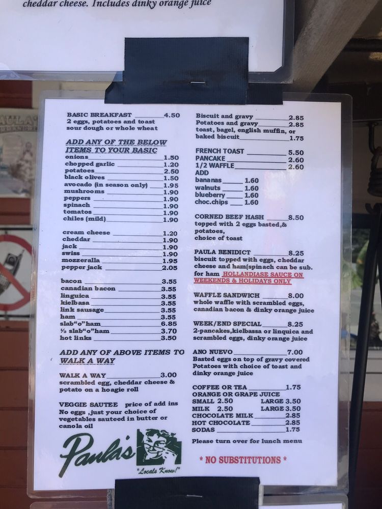 Paula’s Menu (Update 2025)